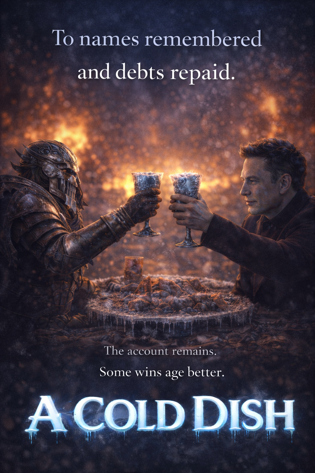 A Cold Dish is a phrase turned into a story — where patience, memory, and timing matter more than noise and speed. Inspired by old-school gaming identities, long-lived online personas, and the idea that nothing truly disappears on the internet, A Cold Dish represents actions that are delayed, deliberate, and inevitable.